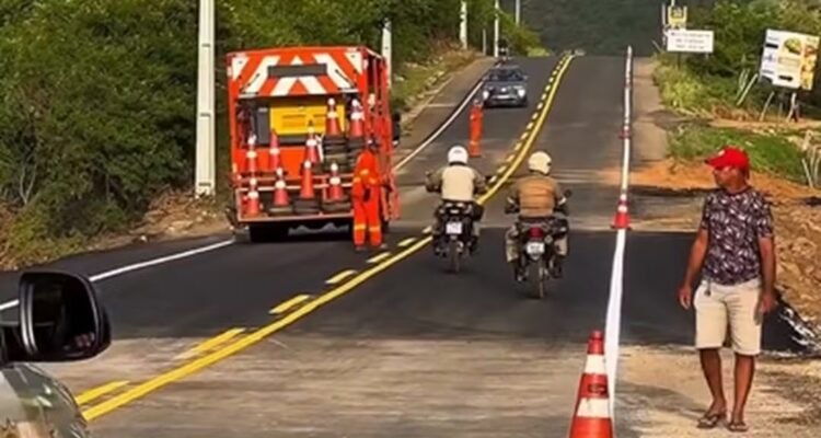A pista havia sido interditada depois que parte da rodovia cedeu na madrugada do último sábado (28). A força da enxurrada abriu uma cratera no trecho, o que foi confirmado pela Defesa Civil de Canindé de São Francisco.