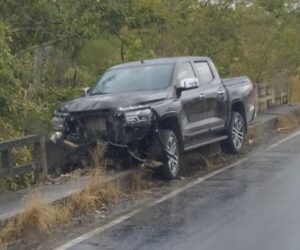 Caminhonete fica danificada após colidir contra ponte na SE-170